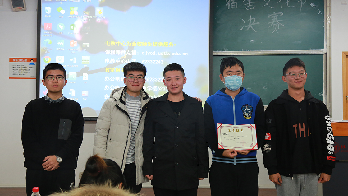 经过激烈角逐,1斋439获得“最佳人气奖”、1斋528获得“最佳创意奖”、1斋541获得“最佳默契奖”、1斋537获得“最佳文艺奖”、12斋120获得“最佳风采奖”、12斋119获得“最佳台风奖”、1斋522获得第一名、12斋121获得第二名,1斋526获得第三名。辅导员老师上台为获得荣誉的宿舍颁奖并合影留念。