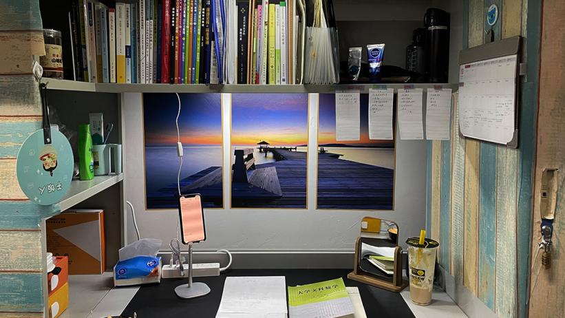 随后,评审团前往了十二斋男生宿舍,相较于女生宿舍的可爱活泼,男生宿舍更加简约沉稳、干净整洁,也别有生趣。