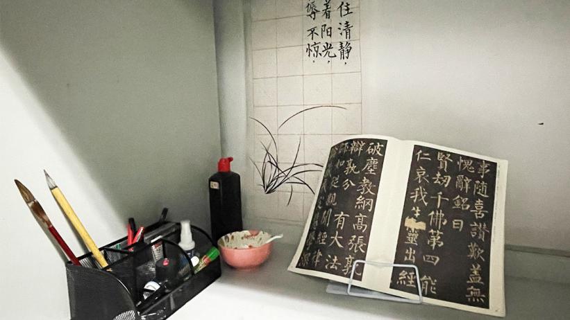宿舍内摆放整齐的书法用具、精心装扮的宿舍门、贴心励志的标语充分地展示了同学们积极向上的生活态度,得到评委的一致好评。