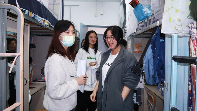 评审首先从一斋女生宿舍开始。评审团进入学生寝室逐一进行评审,分别进行打分。女生宿舍以活泼可爱为主要基调,房间内部装饰精美、活泼动人,让人不禁眼前一亮。