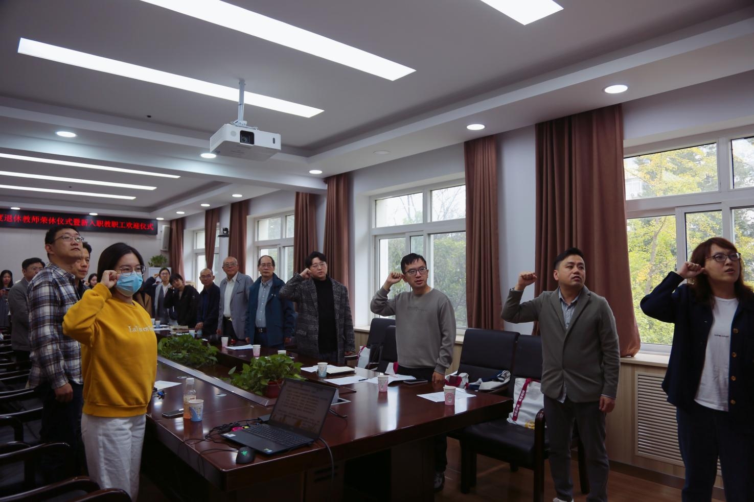 仪式下半场,新入职教职工逐一做了自我介绍,并在庄严的氛围中,集体进行入职宣誓,承诺将以“钢铁强国、科教兴邦”为己任,紧紧围绕立德树人根本任务,争做新时代的“四有”好教师。