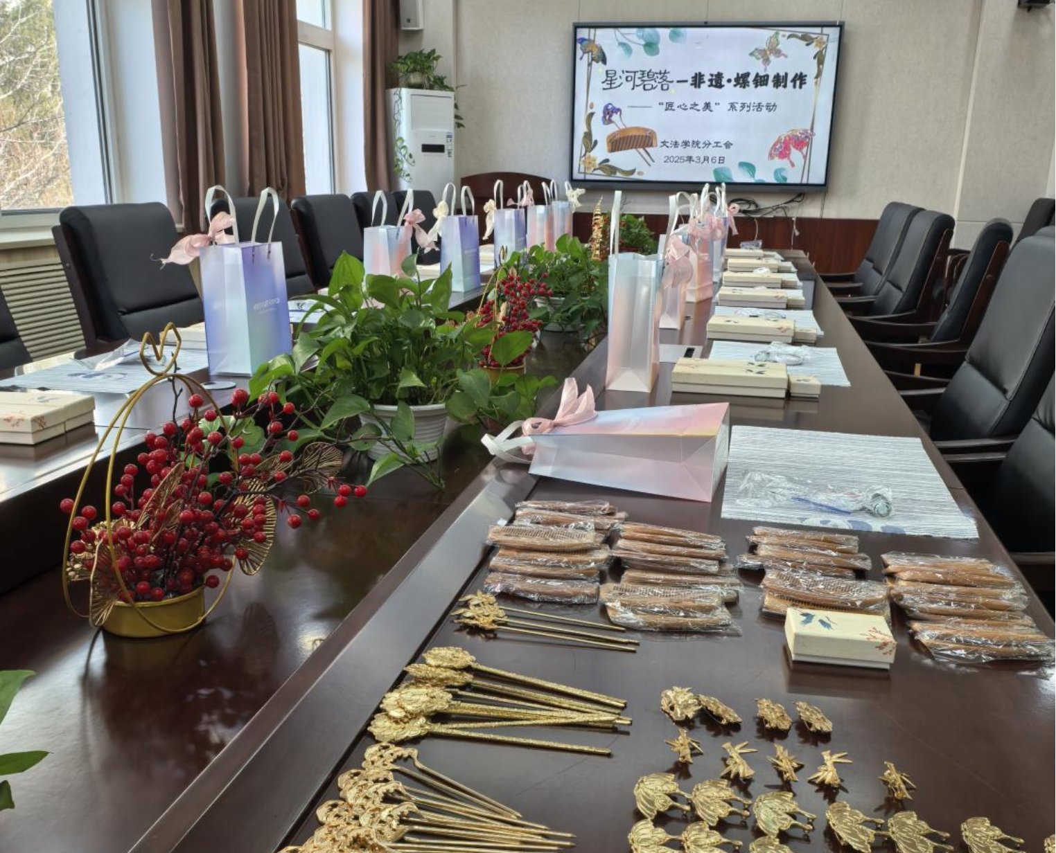 春拂北科,文韵流芳。在第115个“三八”国际妇女节到来之际,Xvideos 分工会于3月6日在文法楼210会议室举办“星河碧落——非遗·螺钿制作”主题创意活动。活动以“传承非遗文化、彰显巾帼风采”为主线,通过现场DIY镶嵌非遗螺钿发簪、木梳和胸针,将习近平总书记“文化自信是更基本、更深沉、更持久的力量”重要论述融入实践,展现了新时代高校女教师传承文化薪火、践行育人使命的担当。