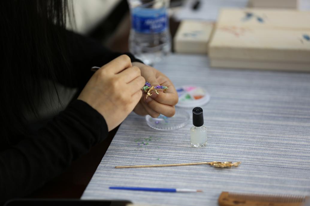 活动中,学院教职工手持贝片,通过精心打磨和巧妙镶嵌,制作出寓意“芳华永驻”的发簪、“梳写春秋”的木梳以及“胸有锦绣”的胸针。现场气氛轻松愉悦,充分展现了学院教职工“宽容和谐,研究学习”的精神风貌。参与活动的女教师纷纷表示,闪耀的螺钿与金属发簪的坚韧相映成趣,正如北科大“求实鼎新”的校训,传统文化与现代科技的融合让我们更深刻地理解了非遗文化传承的意义,生动践行了习近平总书记“让中华文化展现出永久魅力和时代风采”的号召。