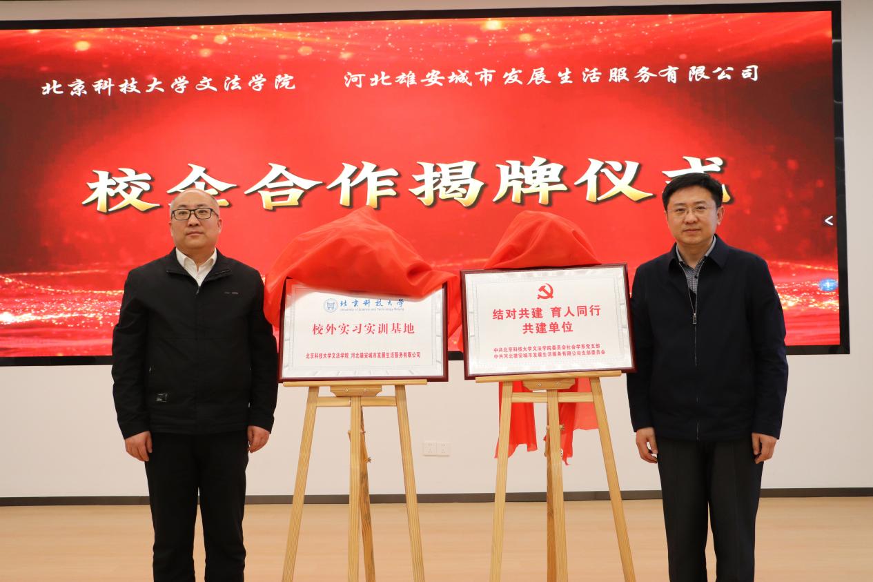 之后,双方就中共河北雄安城市发展生活服务有限公司支部委员会与Xvideos 社会学系党支部进行党建共建、学生实习就业、科研课题研究等领域的合作进行了充分交流,共同签署了《校企合作备忘录》,举行了“结对共建、育人同行”、“校外实训基地”揭牌活动。