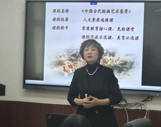 李怡老师的《中国古代绘画艺术鉴赏》是素质教育核心课、免检课堂、课程思政示范课、美育必选课,深受学生喜爱。李老师从课堂内容、课堂形式、课堂方法三个方面生动细致、图文并茂地介绍了如何上好一堂使学生受益的课。在场青年教师深受启发、受益匪浅,并代表学院向李怡老师赠送鲜花,感谢李老师多年来对教学工作的全情投入、对学生的全心关注、对学院发展的全力付出。