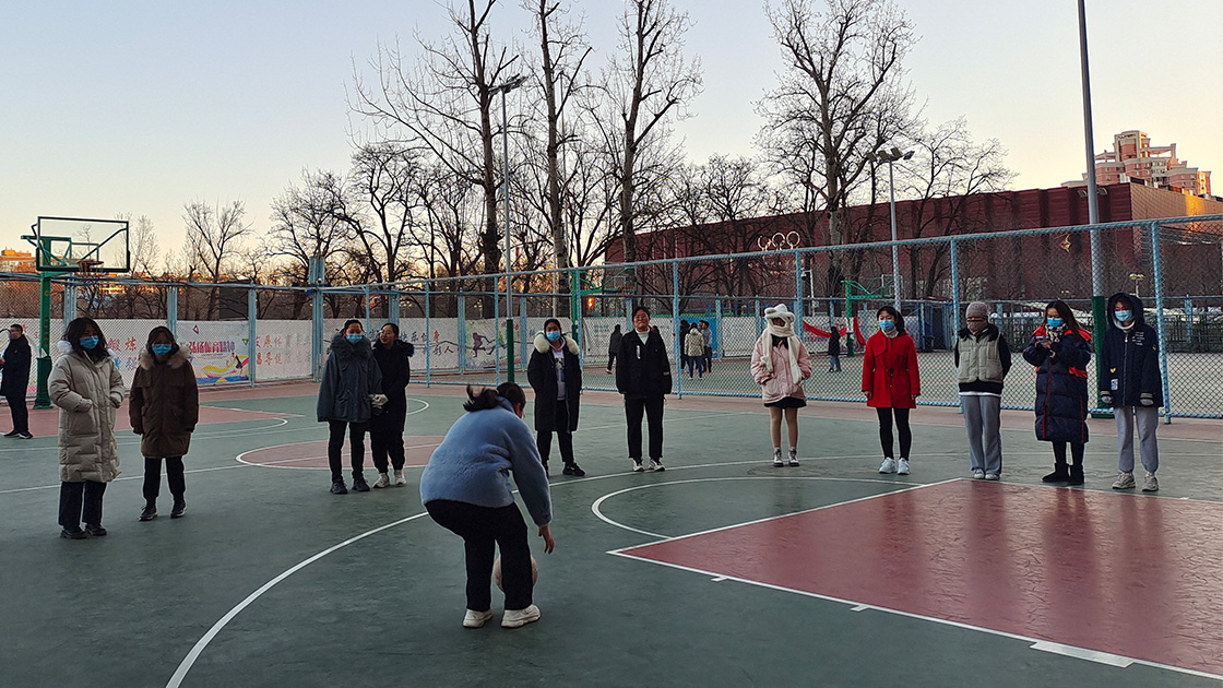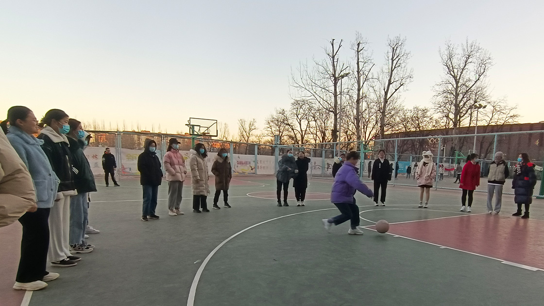 本次传统早操分为足球、篮球、扔沙包、8字长绳、竹竿情人五个活动项目。