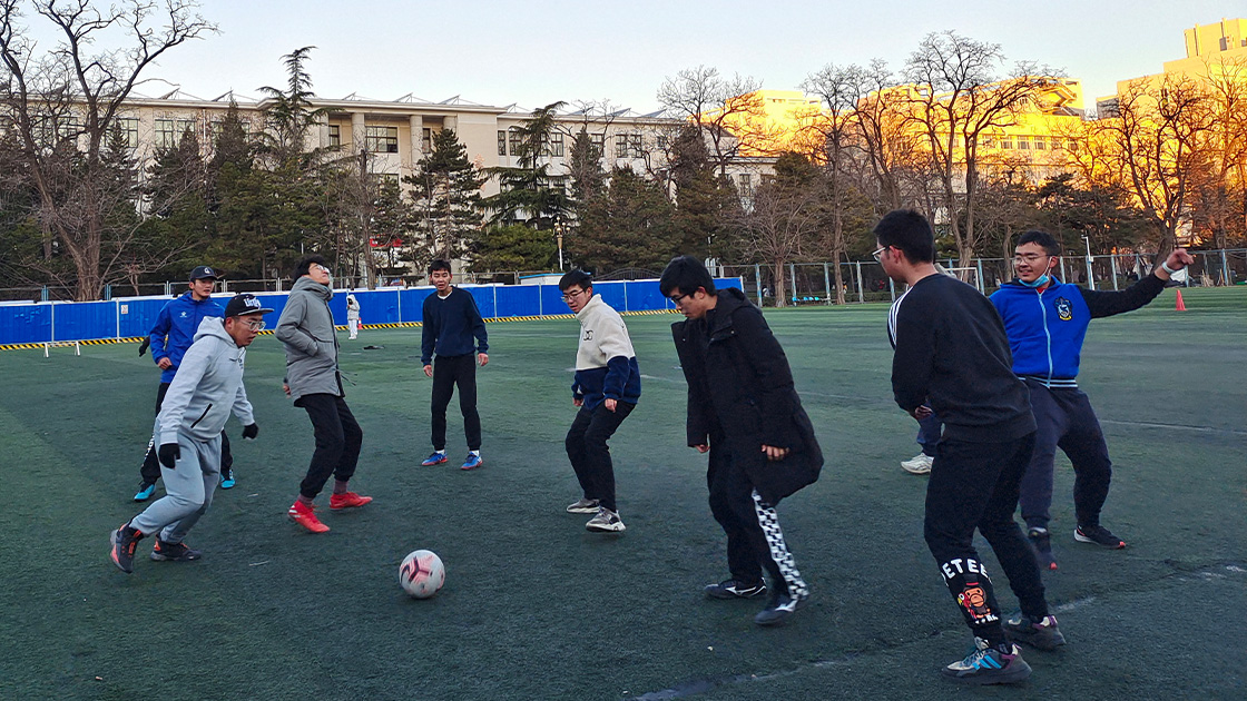 足球活动考验团队默契度和团队配合力。滚圆的足球拉满了所有人的心弦,燃烧着足球场上每一位同学滚烫的心。即使并不娴熟专业,同学们还是运用全身气力,挥洒汗水,展现青春活力。