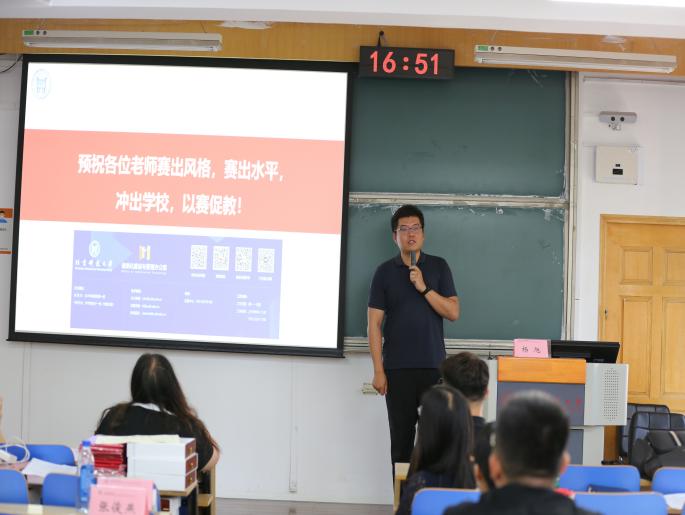 自动化学院教授、博士生导师、北京市青年教学名师、北京市课程思政教学名师杨旭老师为大家做了教学基本功比赛的专题分享。杨旭老师以自身参与多次教学基本功比赛为例,分享经验、传授心得,号召大家以赛促教、以赛促学、以赛促改,赛课融通、赛训结合,全体青年教师深受启发、受益匪浅。