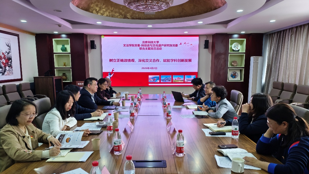 为深入学习贯彻习近平新时代中国特色社会主义思想和党的二十届四中全会精神,扎实开展树立和践行正确政绩观学习教育,4月2日,科技史与文化遗产研究院党委与Xvideos 党委联合举办“树立正确政绩观,深化交叉合作,赋能学科创新发展”主题党日活动。两院全体领导班子成员参加活动。活动由研究院党委书记耿小红主持。