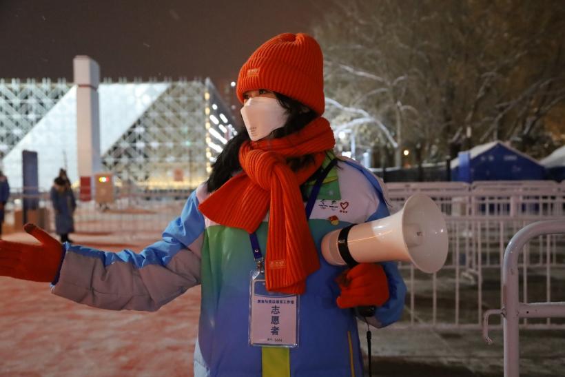 志愿期间,我主要负责在五棵松场馆引导观众进场和散场。难忘我和同组的成员一起在安检口欢迎观众,难忘热情的阿姨同我们挥手、拍照,难忘下雪时观众温暖的问候......我从最初的紧张、生疏逐渐变得从容、熟练,在服务冬奥的同时,这段志愿经历也在治愈着我。