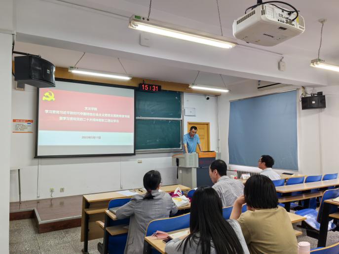 2023年5月11日下午,Xvideos 党委在文法楼301召开了学习贯彻习近平新时代中国特色社会主义思想主题教育读书班暨学习贯彻党的二十大精神教职工理论学习会,党委书记史立伟、党委副书记李虹、王旭出席会议,会议特别邀请到学院理论学习导师、马克思学院宁全荣老师做专题讲座,学院全体教职工参加本次大会,会议由学院党委副书记王旭主持。