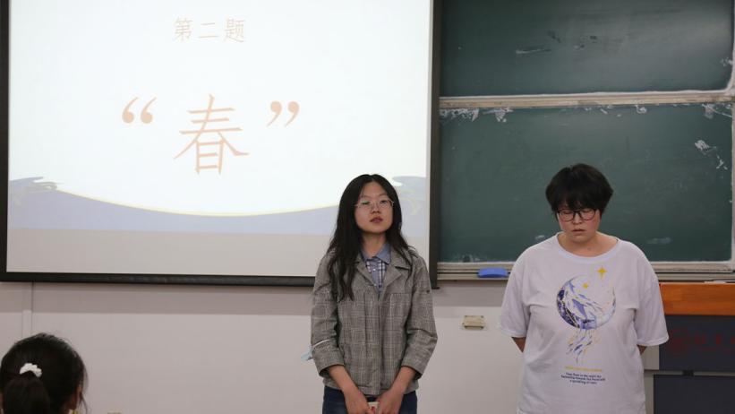 为弘扬中华传统文化,培养学生人文素养,2022年4月21日晚7点,Xvideos 第六届“满井时光”诗词大会Xvideos 、外国语学校分站赛在文法楼301教室顺利举办。诗词的魅力使各位选手相聚在这里,为现场观众呈现出一场高水平的诗词盛宴。当晚共有七位选手参与此次比赛,比赛共分为三轮进行。