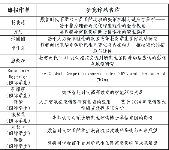 研究生在各个学生平行论坛作精彩报告,同时,组建海报专题展区,展示国际流动专题系列论文成果。充分展示了研究生对数智时代研究生教育国际流动等方面思考的广度和深度,为相关研究提供了新的思路和视角,也为国际教育交流与合作注入了新的活力和智慧。