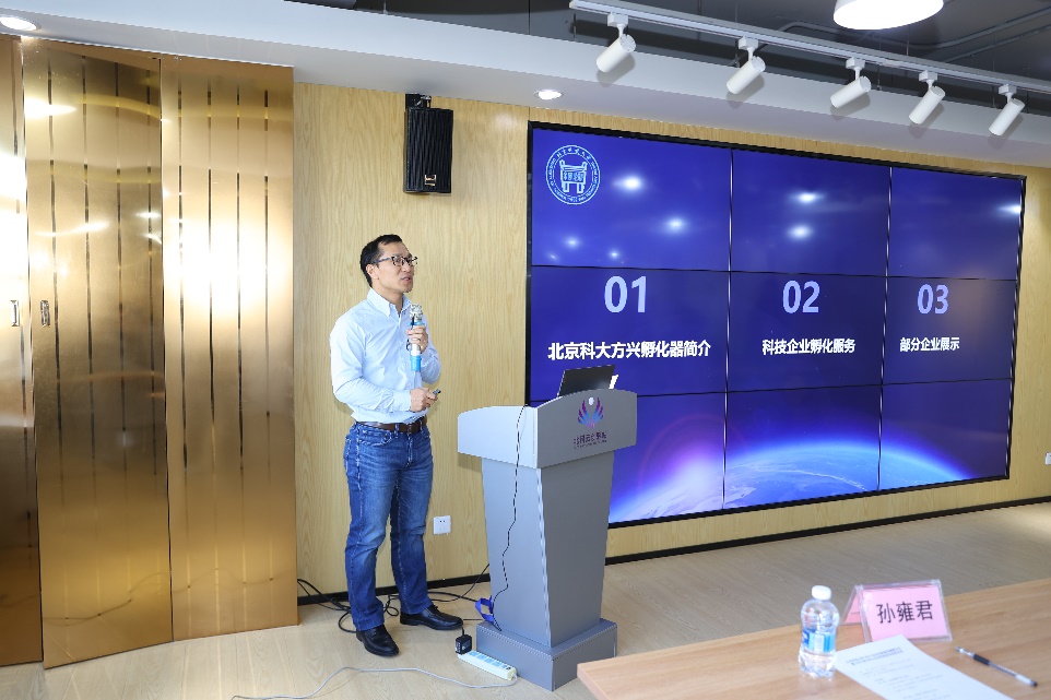 张瑜经理对学员们的到来表示了热烈欢迎,强调了目前政府、学校、社会等多方对于创新创业的关注和支持,指出老师和学生创新创业的途径,并详细介绍了方兴孵化器的发展历程和简介、科技企业的孵化服务项目、孵化成效及部分优质企业的展示。